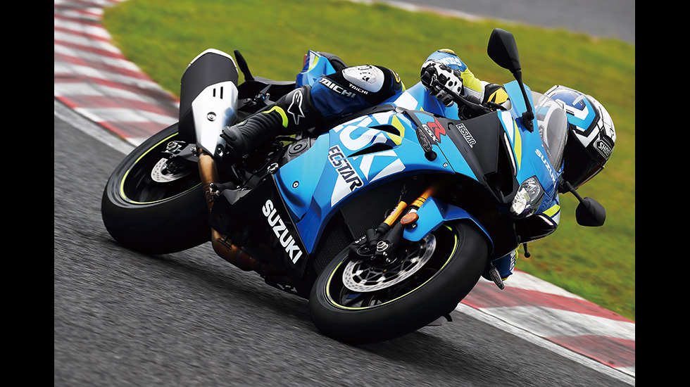 Using lessons learning from Suzuki MotoGP chassis development, the engine angle of the GSX-R1000 was rotated backward six degrees. This had the joint effect of reducing the distance of the fork to the center of the chassis by 20 mm and increasing the swingarm length by 40 mm. This increases chassis stability and improves aerodynamics.