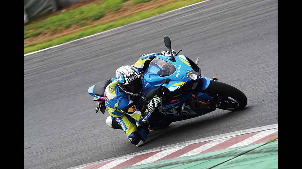 The reasonable sport riding position is created by a carefully crafted relationship between the clip-ons, footrests, and seat. Compared to the prior-generation GSX-R, the top of the fuel tank is lowered 21mm lower to make it easier for the rider to tuck in on a racetrack straightaway.
