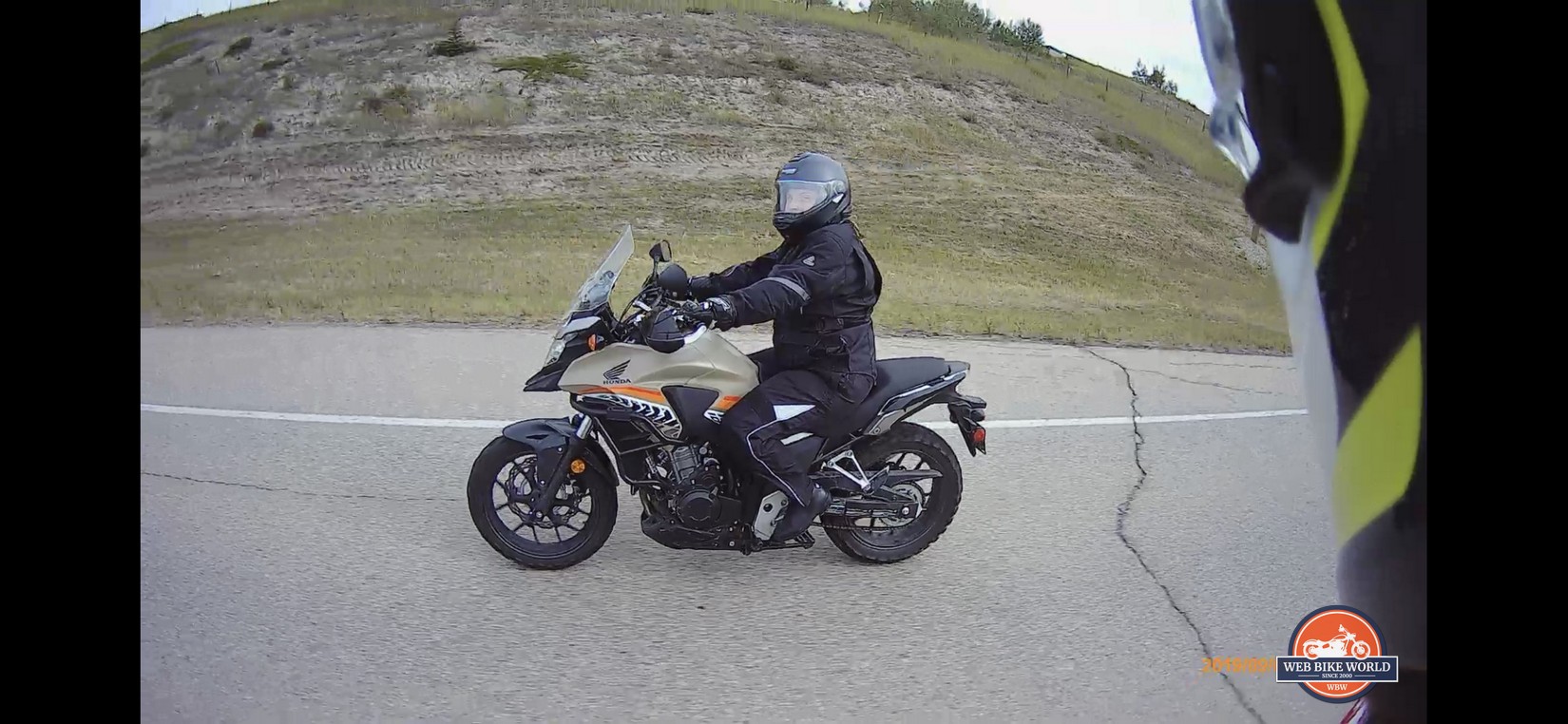 You can still see how the edges of the shots curve weirdly in the two shots above, but after some practice, I got better at learning to center my subjects as you can see with the photo of my wife on her CB500X below.