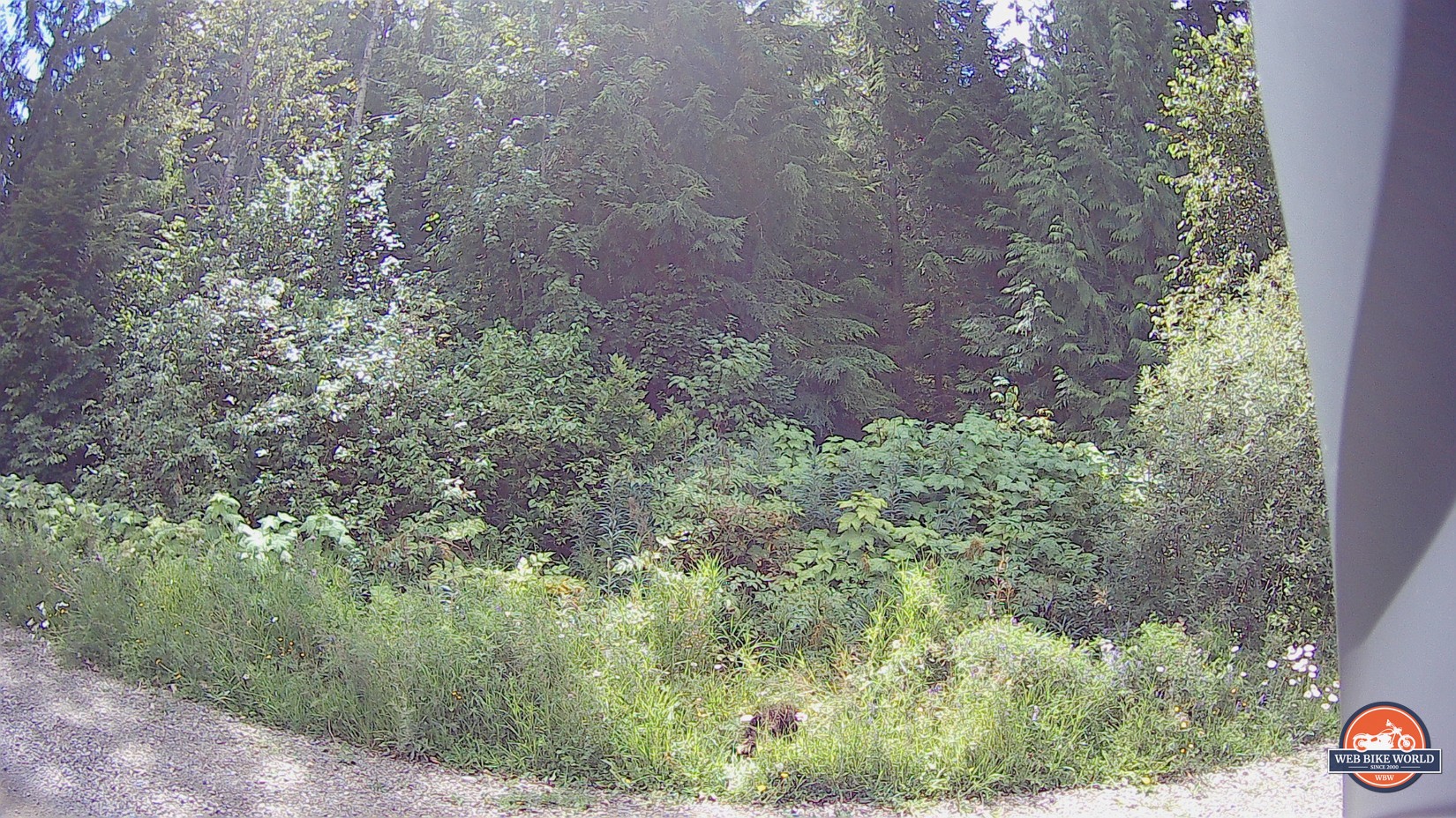 I waited too long to push the camera button to get a photo of the porcupine after I got right beside it. The result was that it was off the road and partially in cover when the SENA actually took the photo (below).