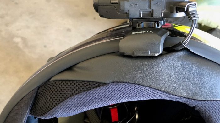 I like this feature, but notice sometimes the connection isn’t always 100% when I put the helmet on and start up the system. The proof of this is that sometimes only the right speaker works until I wiggle the wiring where it connects to the camera. Doing that will instantly bring the left speaker back to life.