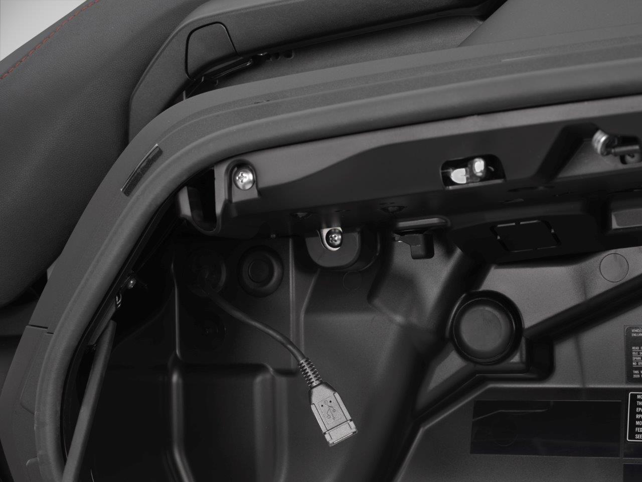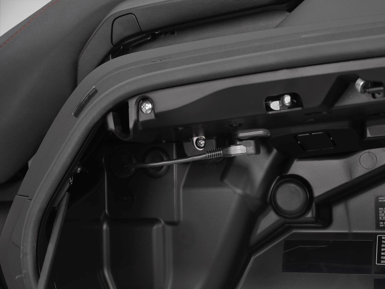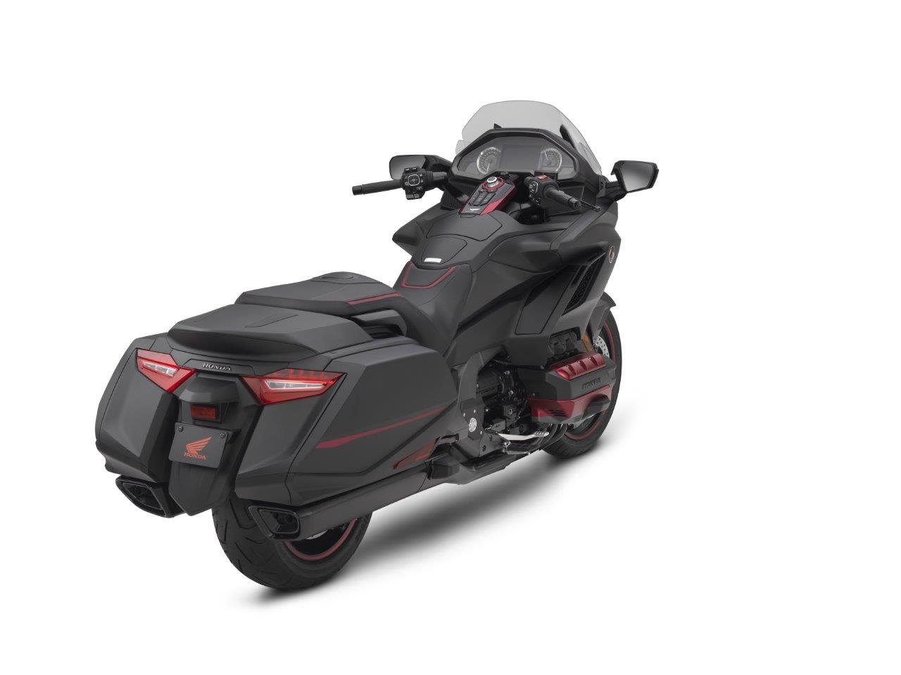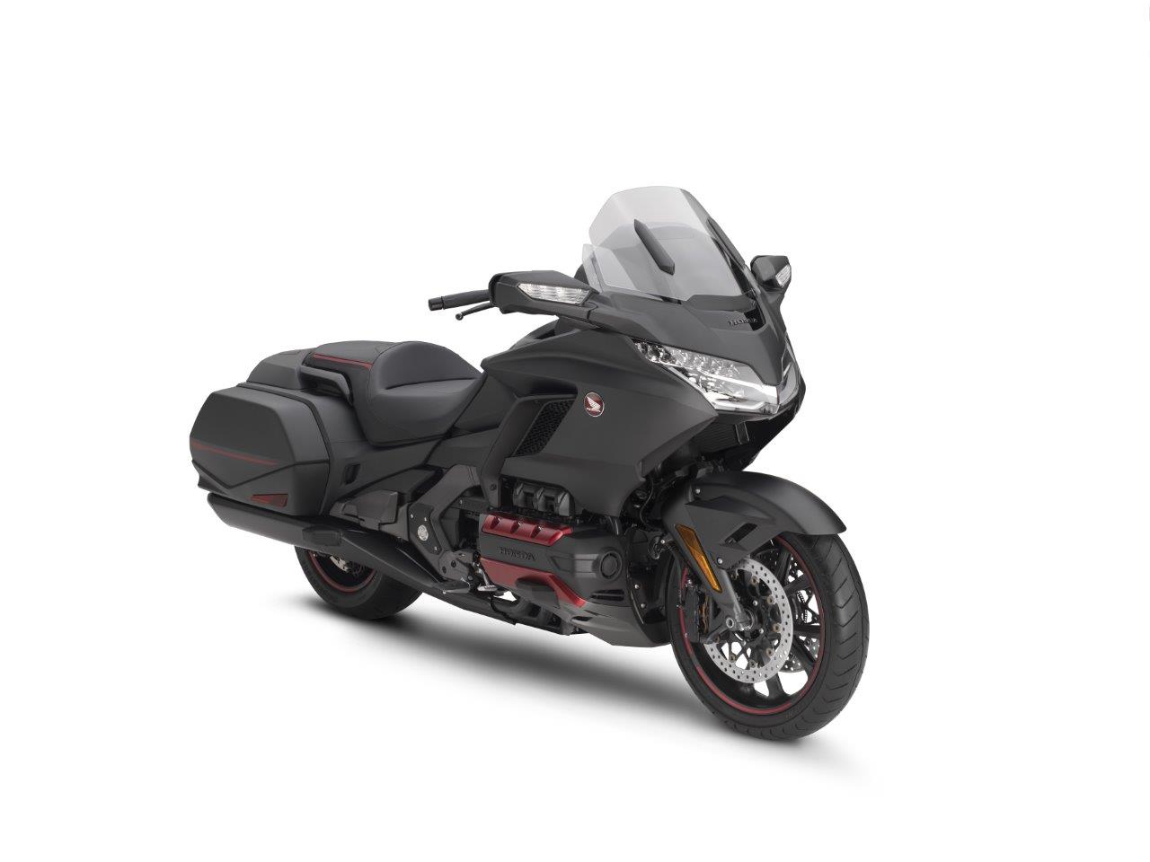 The 2020 Gold Wing also features a new button for the center storage pocket for improved ergonomics, and a new color scheme: Matte Black Metallic with additional red anodized surfaces.