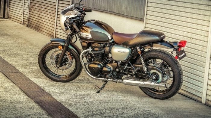 Two versions of the W800 are available: the standard W800 which is the middle of the range in Canada and Europe, and the base model in the USA, which has a tuck and roll seat, standard ABS, fuel injection and retro-modern gauges, and the W800 Cafe, which replaces the seat with a cafe racer seat that has a bolstered rear pad, and envelops the front of the bike with a classic style cafe racer cowl and windscreen.