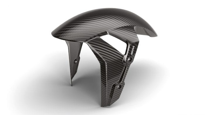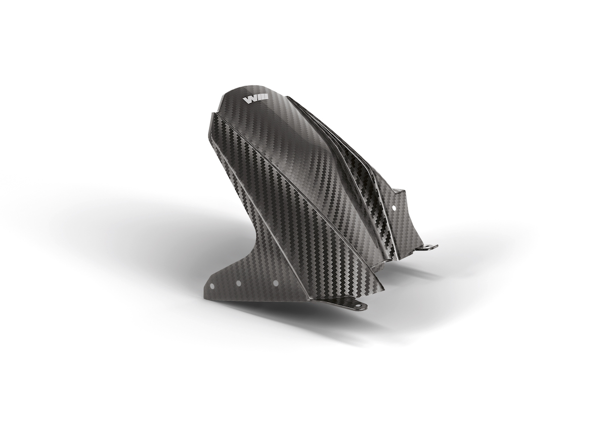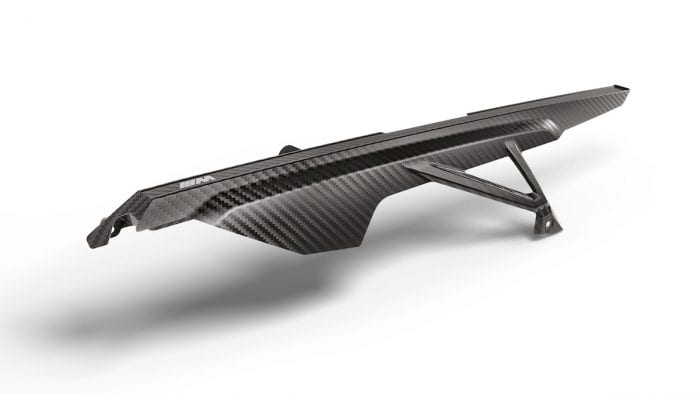 In terms of what’s offered, there are carbon fiber body and fairing parts, new seats, different footrests, braking and clutch levers, fork clamp, wheelsets, chain tensioner, and a lightweight battery.
