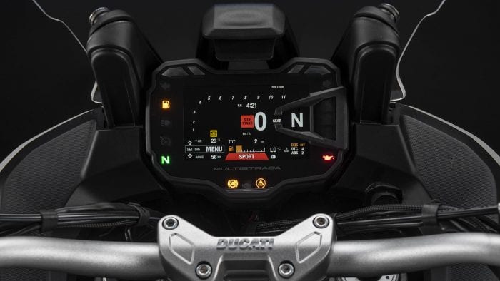 The Multistrada 950 S is equipped with a high-resolution color TFT instrument panel that is easy to read even in sunlight.