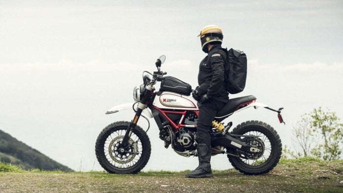 For 2020, the Ducati Scrambler Desert Sled gets a new color scheme called “White Mirage,” a white color scheme over a red frame, with black spoked wheels. Prices for the 2020 Desert Sled start from $11,995.