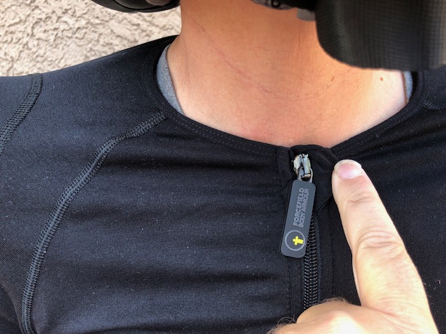 And it will never happen when you are wearing the Pro Jacket X-V! The folks at Forcefield took the initiative to add a small triangular piece of fabric that covers the top of the zipper when the jacket is zipped up. This might sound like a very picky detail, but it is just one more small indication of the effort that went into designing this jacket.