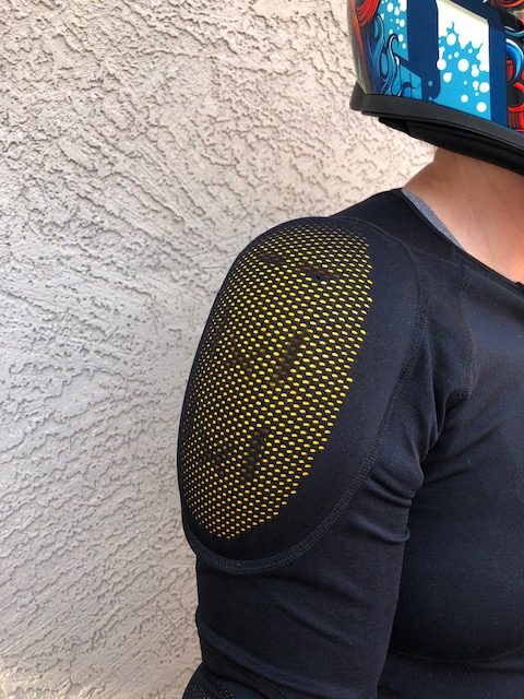 But with the Pro Jacket, I would never consider not wearing it due to comfort issues. The spandex or elastic nature of the jacket material is very stretchy and also very soft. I always feel that the armor is being held in place and in the correct location. However, I have never felt a place where the jacket material feels too tight or binding. It somehow feels like it is custom sized to fit my arms and upper body.