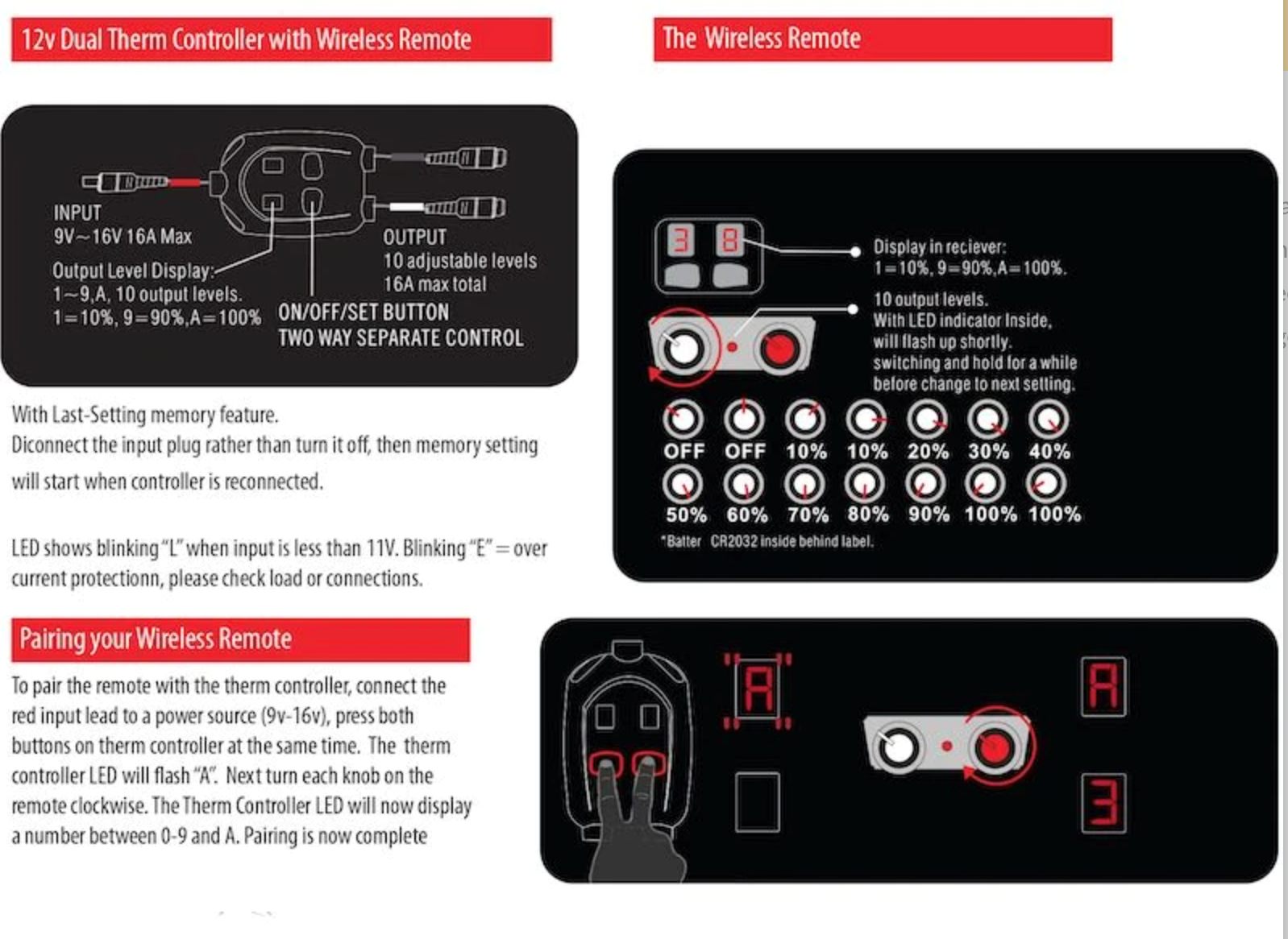Connectivity is not complex by any means, but for clarity of use both the White and now Blue banded circuits are marked on the Dual Therm Controller, the leads and the wireless remote; the (Red) top of the second circuit dial is now sporting a Blue marking.