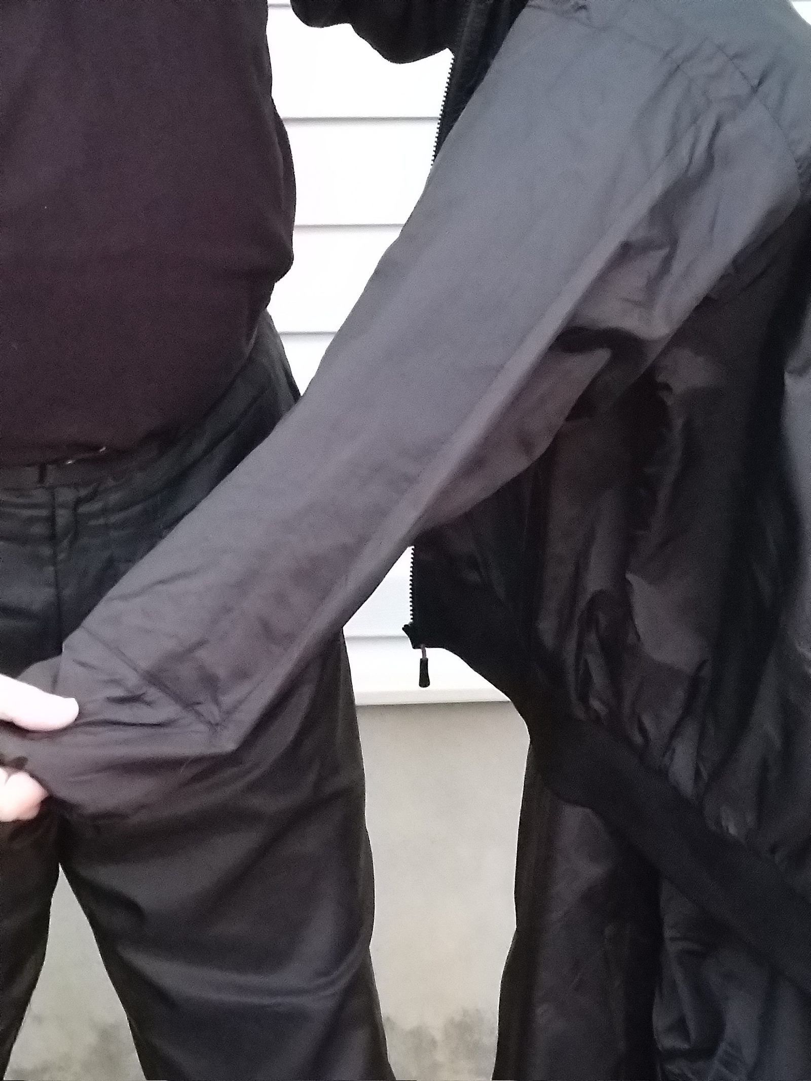 But in trying the jacket liner on over the usual base and mid-layer (a light long-sleeved fleece pullover) the sleeve length issue is put to rest – it is perfect. The XL size is just a wee bit large in the torso but with the outer garment in place, there is no bunching of the jacket liner and the integrated (large) heating inserts sit flat, as intended.