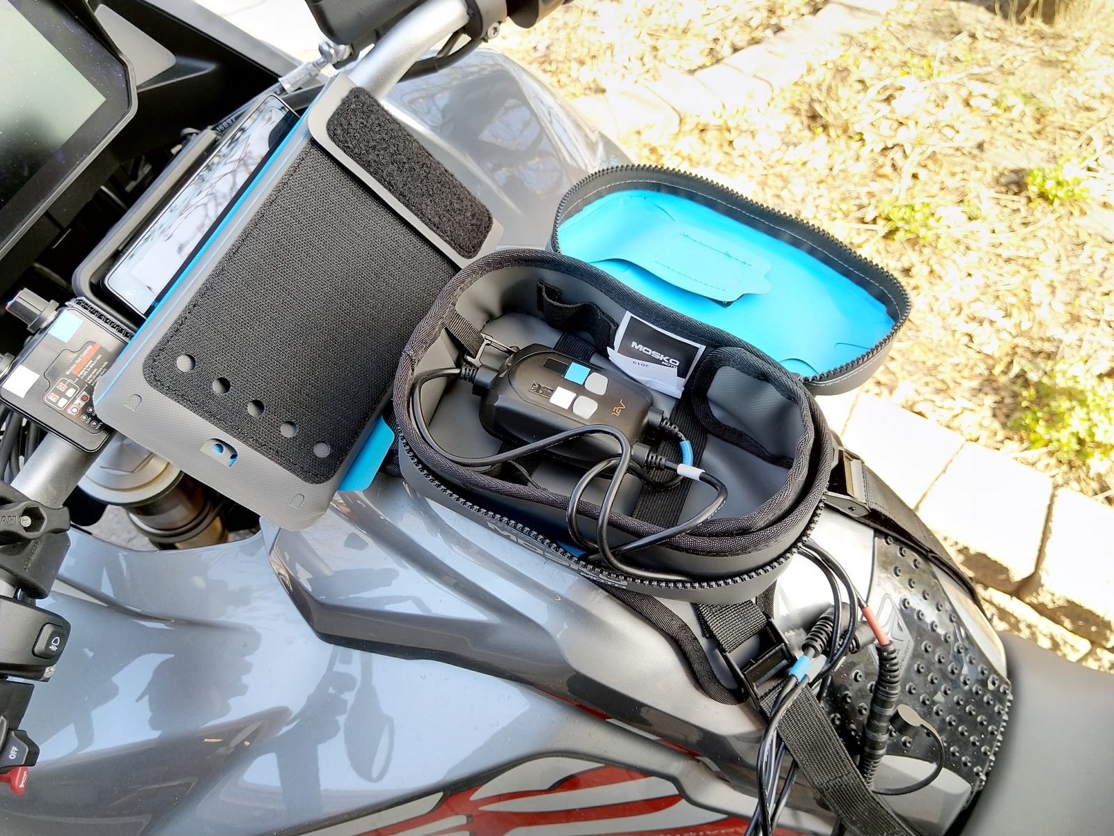 If the wireless controller is used (the norm) it becomes the externally placed management piece while the Dual Therm Controller and harnesses are tucked inside the tank bag, like the Mosko Moto Pico v2 (under review) with its convenient back access pass-through or, an accessible pocket of the jacket, usually the upper left chest one.