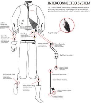 This allows compatible pieces, like the Volt Heat Fusion 12V/7V Dual Source Leather Motorcycle Heated Gloves to be connected to the left and right sleeve harnesses for even more heated coverage.