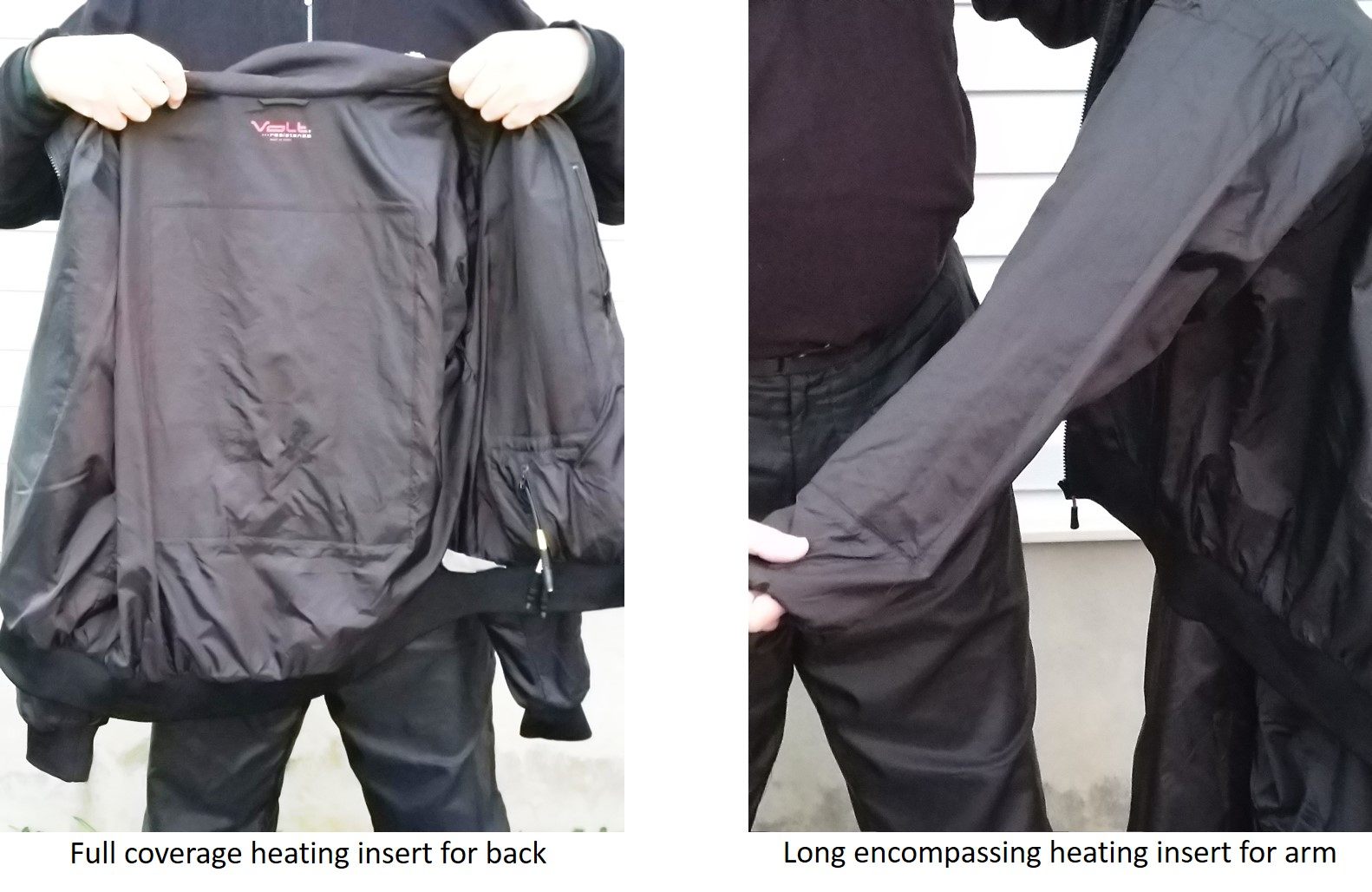 Heated Inserts Layout – the Zero Layer Technology heated insert panels are thin, pliable, and totally unobtrusive. One only need to look at the generous number and strategic placement of the inserts in the jacket liner, shown in the photos below, to understand how effective, and efficient this garment really is.