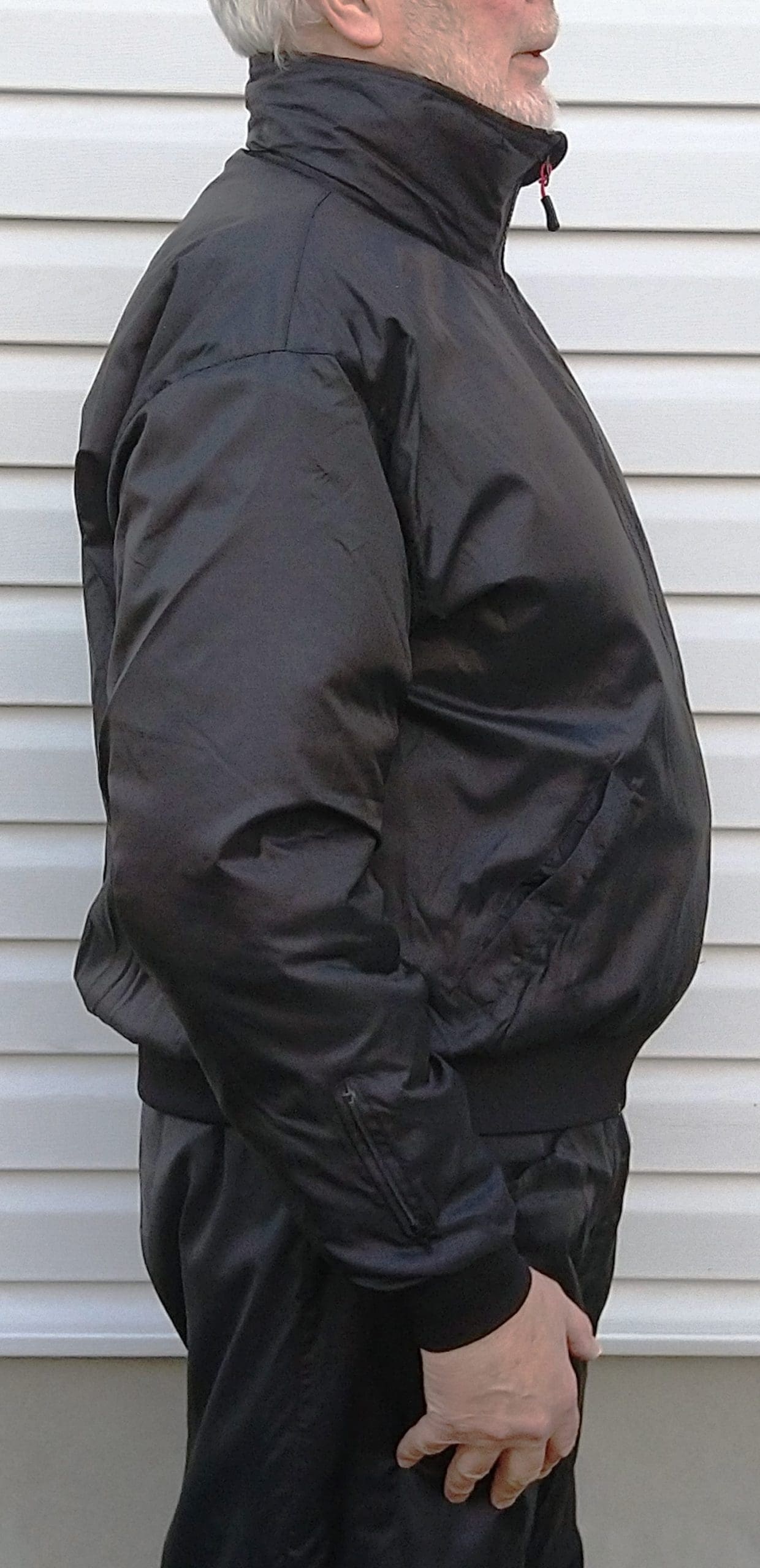 Offsetting that it’s a bit large torso-wise is the fact that sleeve length is perfect; I have long arms and most upper garments in Large or XL are often short in the sleeve length category – but not this garment. And the knit cuffs are a classy comfortable finishing touch as well.